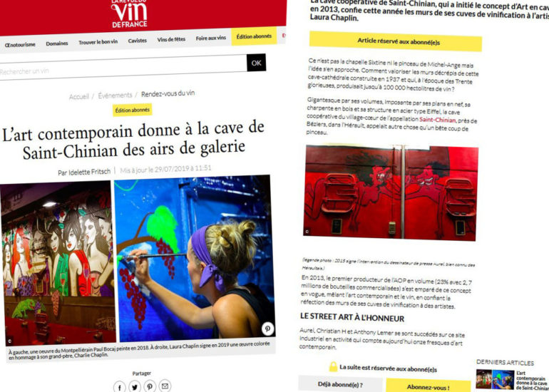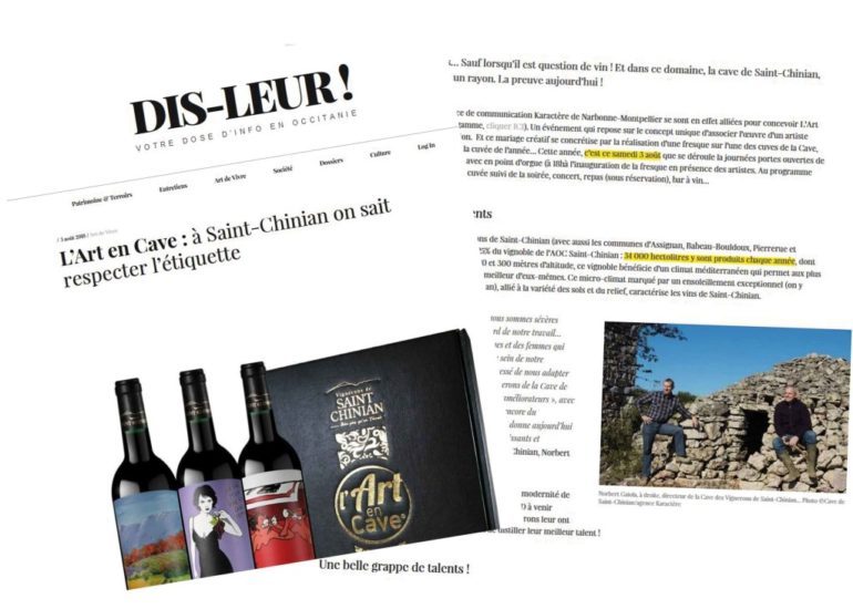 La cave de Saint-Chinian fait partie, grâce à l’Art En Cave, des 4 héros de l’œnotourisme d’après Gilles Moreau, > Voir la parution sur...